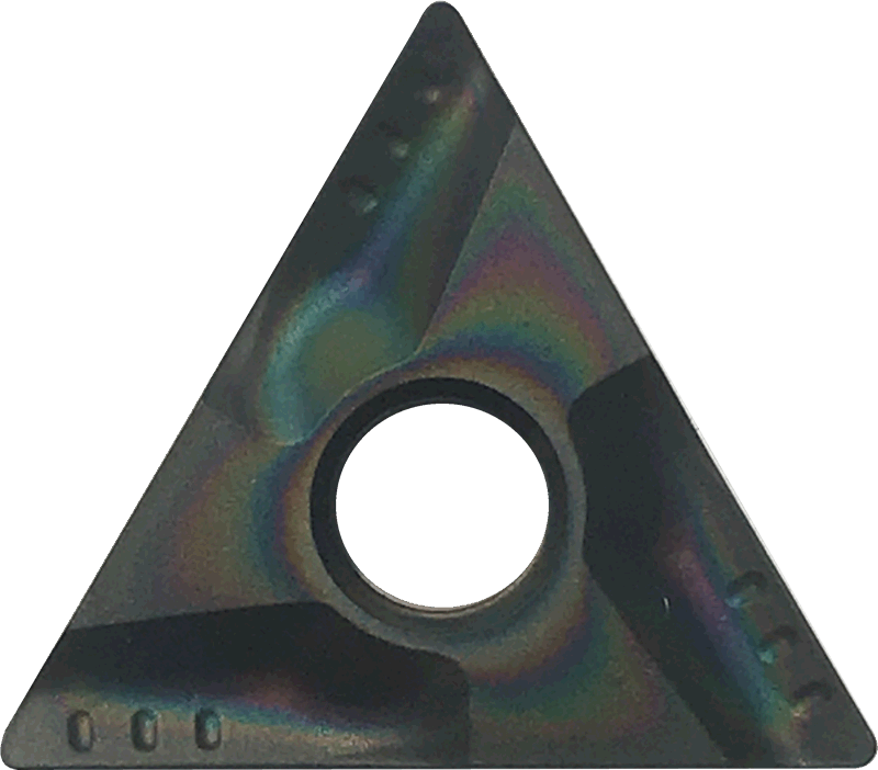 TiAl/AlCrSiMeN/AlOx是專門為硬質合金刀片開發的納米復合涂層,在精車、半精車和半粗車的切斷刀、車刀片上應用效果展現非常優異,在加工不銹鋼材料時,通過批量對比,比在用的某國外品牌涂層刀片壽命提高2倍。