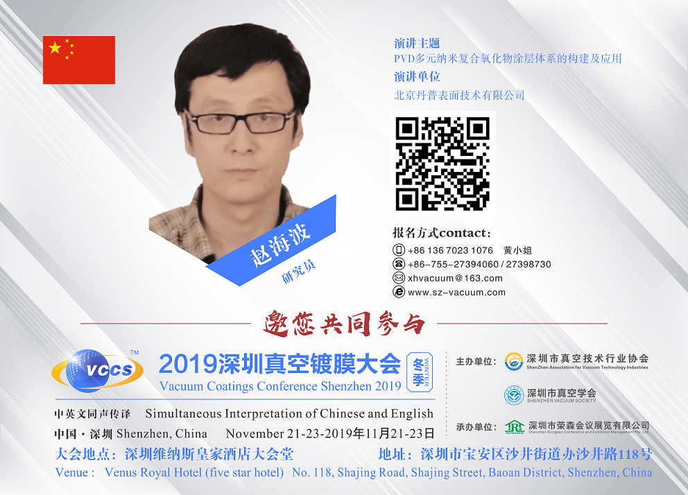 北京丹普表面技術(shù)有限公司也受邀將參加這次大會(huì)并派人做專題演講,在大會(huì)23日(9:40-10:20)的技術(shù)報(bào)告會(huì)議上,我公司趙海波研究員將做名為《PVD多元納米復(fù)合氧化物涂層體系的構(gòu)建及應(yīng)用》的專題演講,公司展位S18,屆時(shí)歡迎各位領(lǐng)導(dǎo)及行業(yè)同仁前來指導(dǎo)工作。