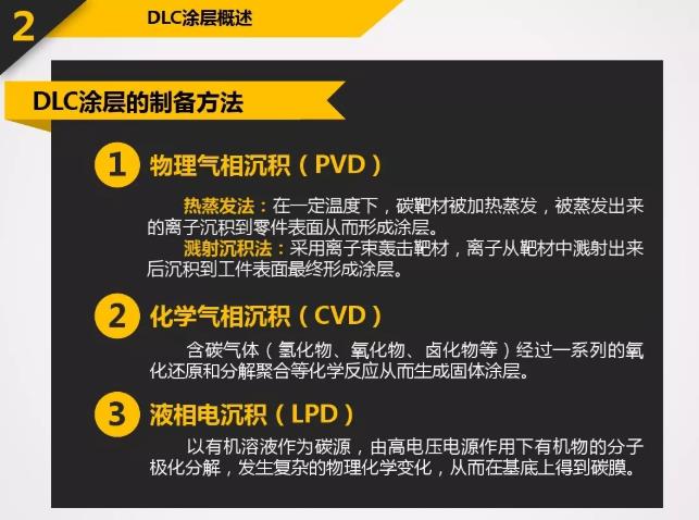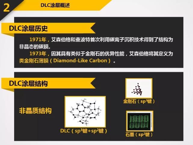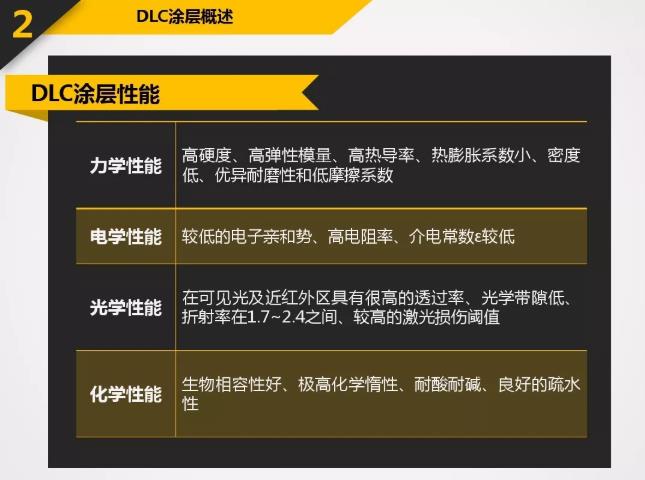 DLC具有很多優(yōu)良的特性:高硬度-60GPa或Hv6000以上;低摩擦系數(shù)-0.06;極好的膜層致密性;良好的化學(xué)穩(wěn)定性以及良好的光學(xué)性能等。應(yīng)用于刀具上的DLC涂層所表現(xiàn)出的特殊性能遠(yuǎn)超過其它硬質(zhì)涂層。涂以DLC的刀具主要應(yīng)用包括:石墨切削,各種有色金屬(如鋁合金,銅合金等)切削,非金屬硬質(zhì)材料(如亞克力,玻璃纖維,PCB材料)切削等。