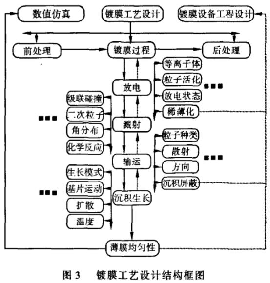 鍍膜設備的工程設計、鍍膜工藝的設計及二者的計算機數值仿真這三者之間是相輔相成的:鍍膜設備決定鍍膜工藝過程的實現,鍍膜工藝促進鍍膜設備的升級,而高性能的計算機仿真設計給兩者的設計提供了強有力的支持。