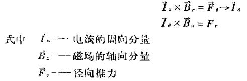 多弧靶源磁場的設(shè)置均為軸對稱場,前面已經(jīng)談到,磁場既有軸向分量,又有徑向分量靶面附近的帶電粒子(垂直靶面運動)在徑向磁場的作用下產(chǎn)生周向運動,而周向運動的帶電粒子在軸向磁場的作用下將產(chǎn)生-徑向推力,即
