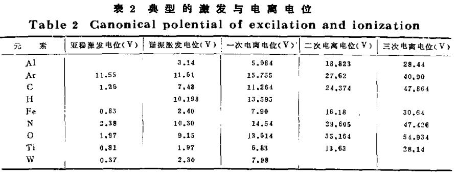 不同種類的氣體具有不同的電離電位,表2列出了幾種元素典型的激發(fā)與電離電位數(shù)值。