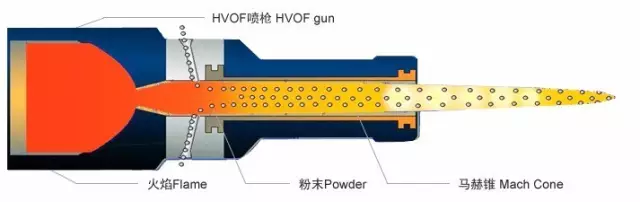 火焰粉末噴涂:用粉末作為涂層填料,持續地將粉末送到燃燒的氣體-氧氣火焰,火焰的熱量使粉末熔化,并射向處理過的工件表面,然后迅速凝固形成涂層。輸送壓縮空氣的噴氣嘴將火焰包圍起來,并使之適當成形。